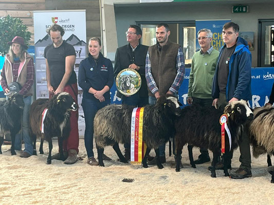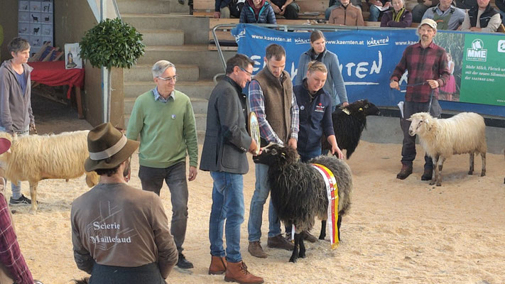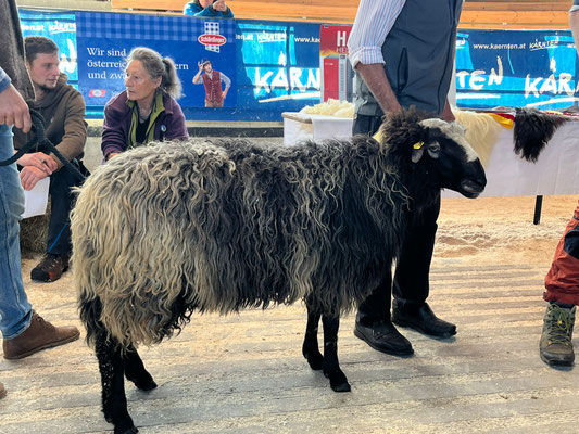 Besonders freut uns, dass die Züchterin Gudrun Kirschmann aus der Steiermark mit ihrem Widder "Lanzelot" Sieger der Widder bis 2 Jahre wurde!