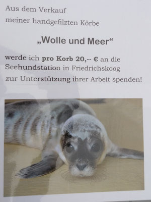 Alle gefilzten Körbe wurden verkauft. So konnte eine tolle Spende an die Seehundstation in Friedrichskoog weitergegeben werden, die sich sofort mit einer ganz netten geschriebenen Mail bedankten! Es war mir eine Freude!